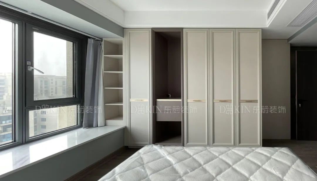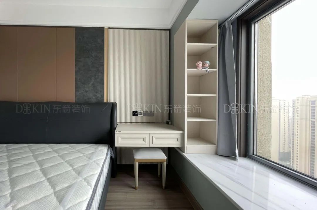 3.主臥定制衣柜和梳妝臺體現(xiàn)居家實用感和烘托整體空間層次感。