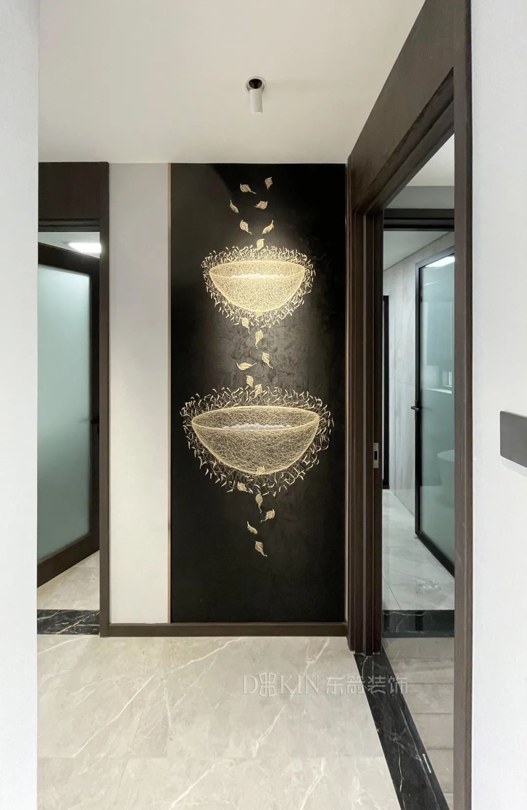 玄關(guān)掛畫簡約自然,整個給人的感覺就是簡約年輕化,凸顯了層次和神秘感,整體為意蘊深長的現(xiàn)代主義。