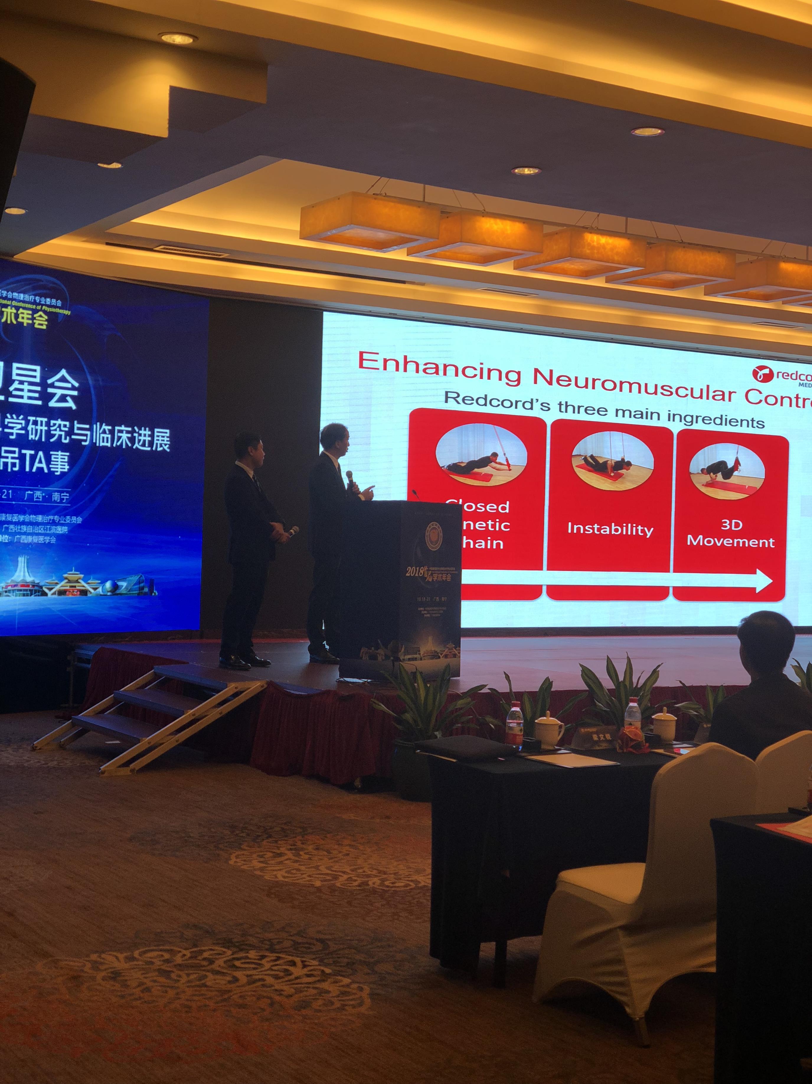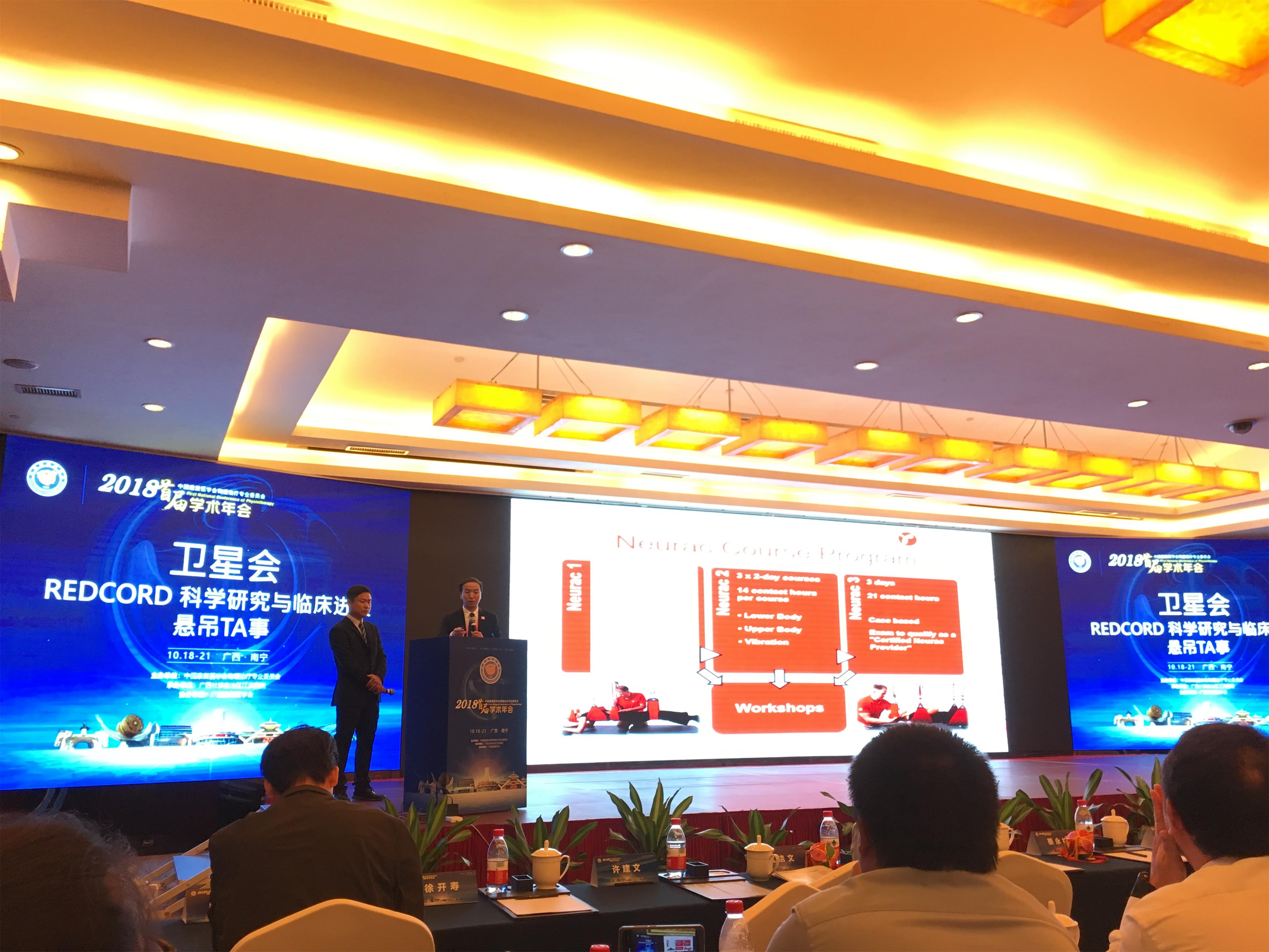 在中山大學附屬第六醫(yī)院王于領(lǐng)主任和中山大學附屬第一醫(yī)院林科宇主任的共同主持下,相繼分享了:《Redcord 科學研究與臨床進展》和《懸吊TA事》兩個主題。